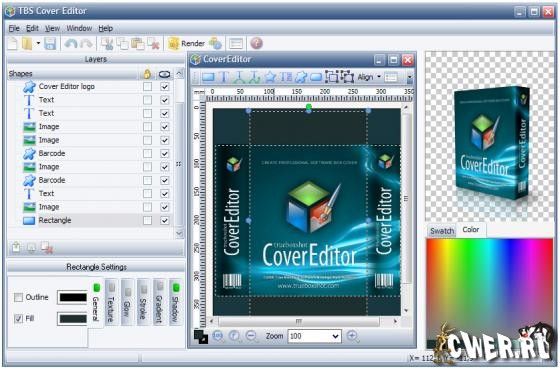 TBS Cover Editor - программа для создания и редактирования трехмерных обложек коробок для ваших представляемых продуктов. Основная отличительная особенность TBS Cover Editor от других подобных программ, заключается в том, что коробка во время редактирования представлена как развёртка всех сторон одновременно с отображением ее готового трехмерного вида мгновенно меняющегося согласно вашего редактирования. Ещё одно не мало важное достоинство редактора - это базово заложенный богатый набор шаблонов вида коробок. Помощник программы после выбора вами понравившегося шаблона и ввода имени продукта и фирмы, поведет вас за руку до конечного результата - готовой коробки.