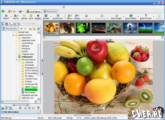 CodedColor PhotoStudio Pro - профессиональная версия фото просмотрщика и редактора, предназначенного для организации, редактирования, сравнения, корректирования, сортирования и печати цифровых изображений. Также программа позволяет изменять размер изображений, накладывать водяные знаки, аннотировать изображения, редактировать EXIF и IPTC данные цифровых фотографий и многое другое. Вы сможете переименовывать несколько изображений, удалять царапины, создавать панорамные фотографии, конвертировать RAW фотографии, отправлять изображения через Skype, накладывать водяные знаки на фотографии, корректировать цвета, запускать слайдшоу, конвертировать и корректировать JPEG изображения в пакетном режиме, открывать картинки и папки изображений из Проводника, генерировать веб-альбомы на HTML и сжимать JPG файлы в размерах. Все операции, проводимые в данной программе обрабатываются в интерфейсе, который поддерживает вкладки.