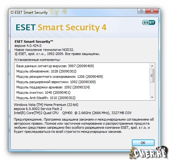 Скачать ESET Smart Security Home Edition v4.0.424 - 32-bit (35 МБ):