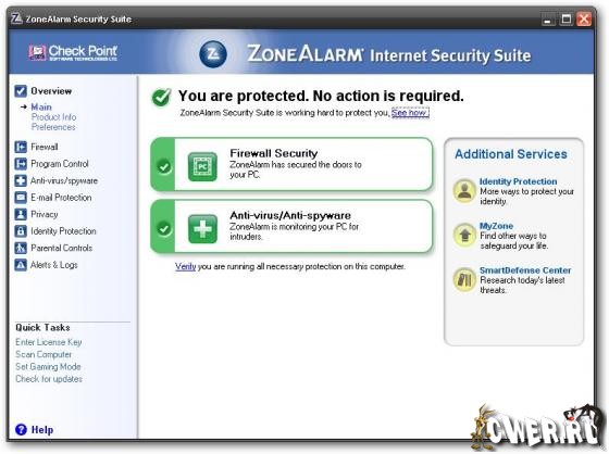 ZoneAlarm Internet Security Suite - комплексное решение для обеспечения безопасности компьютера, в состав которого входят: антивирус, почтовый сторож, компонент фильтрации Web-узлов, а также средства защиты персональной информации и средства защиты служб обмена мгновенными сообщениями. Решение Internet Security Suite обеспечивает наиболее полную защиту от всяческих Интернет-угроз. Данное решение предотвращает заражение вашего компьютера вредоносными программами несколькими степенями защиты. Программа не только сканирует и удаляет вирусы и программы-шпионы, но и предупреждает и блокирует атаки самых последних и современных компьютерных вирусов.