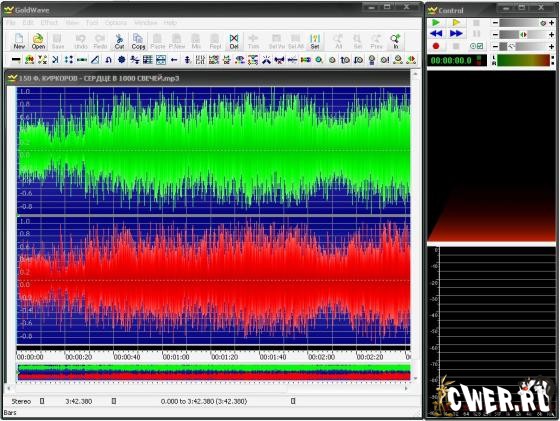 GoldWave - очень мощный звуковой редактор, предназначенный для проигрывания, редактирования, смешивания и анализа звуковых файлов. Умеет быстро работать с большими файлами. Имеет много разных эффектов. Понимает MP3, WAV, AU, IFF, VOC, SND, MAT, AIFF, raw, data, а также множество прочих форматов. Умеет конвертировать из одного формата в другой. С помощью GoldWave можно применять всевозможные эффекты (добавлять эхо, эффект "увядания" звука (Fade), редактировать эквалайзером и пр.) убирать шумы, реставрировать старые записи и т.д. GoldWave позволяет записывать звук с кассет, пластинок, радио, а также с микрофона. Инструмент CD Reader дает возможность делать точные копии треков аудиодисков.