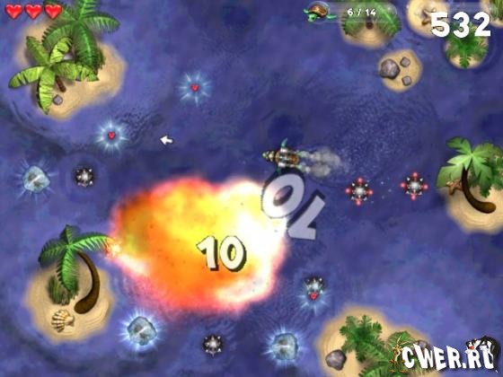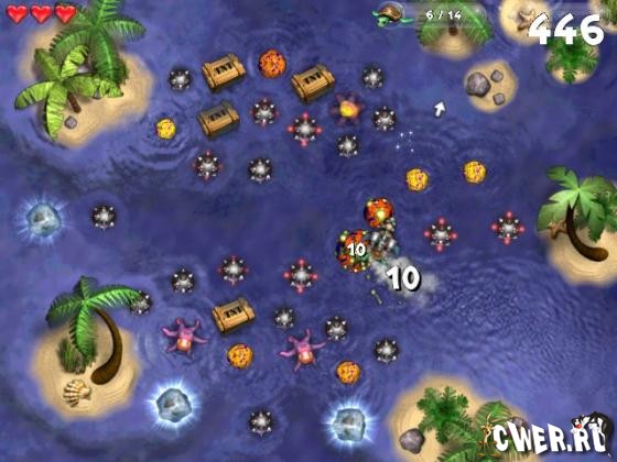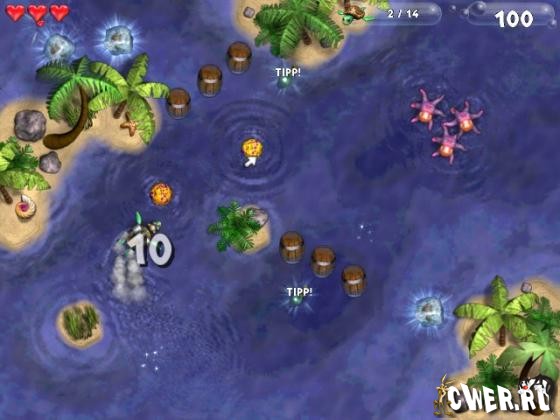 Плывите по волнам и остановите спрутов! Только таким образом Вы можете восстановить мир на острове черепах!