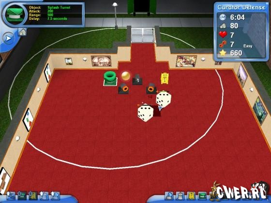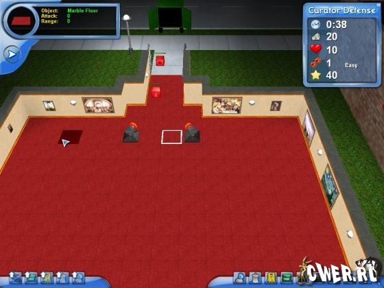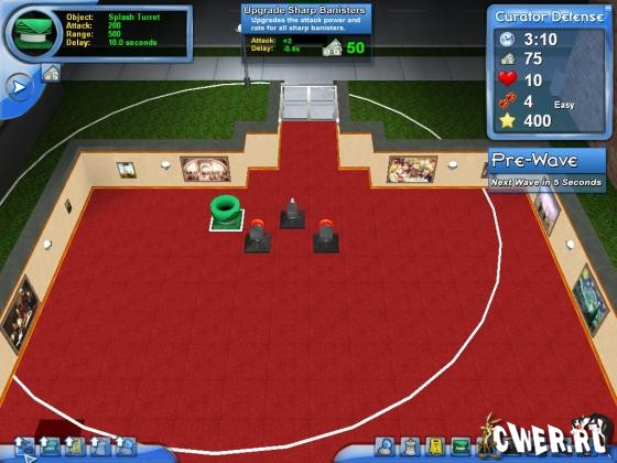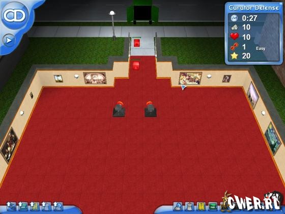 Вы можете только строить оборонительные элементы. Главная задача - не дать противнику пройти поле битвы до конца, до вашей "сокровищницы".