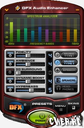 DFX Audio Enhancer - плагин для улучшения качества звучания плееров Winamp, Windows Media Player, MusicMatch JukeBox, Musicmatch, RealPlayer, J. River Media Center, Yahoo! Music Jukebox. C помощью DFX устраняются два главных недостатка - срез высоких частот и недостаточное разделение стереобазы и ее глубины. Есть хорошая подборка заранее заготовленных настроек, то есть пресетов. Проще его можно назвать как модный расширенный эквалайзер, с настройками, которых нет в плеерах.