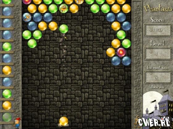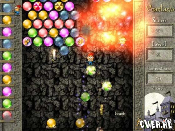Вам предстоит освободить из заточения всех гномов, взорвав все разноцветные пузырьки, которые мешают им вырваться на свободу.