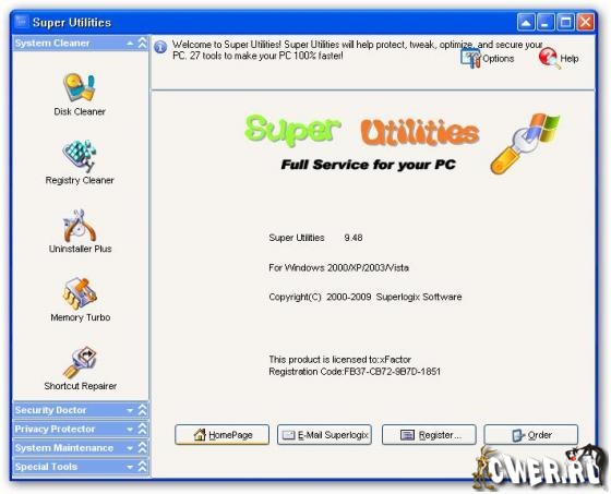 Super Utilities - это набор полезных утилит, имеющий в своем арсенале 29 инструментов, при помощи которых вы сможете наладить, очистить и ускорить работу своей операционной системы. Входящие в состав этого пакета компоненты, в свою очередь разбиты на четыре набора: утилиты для очистки системы, эксплуатации, защиты компьютера и данных, а так же дополнительный набор специальных утилит. Модуль очистки (System Cleaner) содержит компонент для удаления вредоносных программ, а так же инструменты для очистки жесткого диска, реестра и т.д. Security Doctor поможет вам обнаружить, удалить и защитить ваш компьютер от множества вредоносных программ, рекламных модулей, троянов, кейлоггеров.