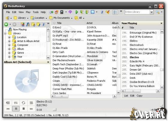 MediaMonkey Gold позволяет упорядочить музыкальную коллекцию, находящуюся на жестком диске, CD и в локальной сети - быстро отредактировать теги (вручную или автоматически с помощью данных из базы freedb.org), найти неполные или повторяющиеся файлы, переконвертировать файлы в другие форматы, записать музыку с CD (в форматах OGG, MP3 или WMA) или на CD, а также загрузить в mp3-плеер. Поддерживается работа с CD и файлами OGG, WMA, MPC, FLAC, APE, WAV и MP3. В MediaMonkey встроен проигрыватель с удобным интерфейсом и поддержкой модулей Winamp. Может интегрироваться с Nero для записи дисков.