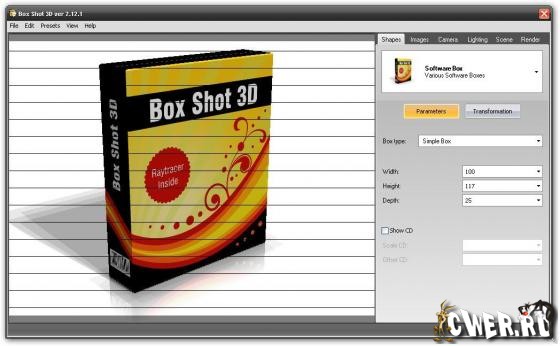 Box Shot 3D - уникальная в своем роде программа, которая дает возможность создавать виртуальные трехмерные коробки для ваших электронных книг или программ. Вы вводите фронтальное, горизонтальное и профильное изображение, а программа генерирует на их основе изображение коробочной версии. В программе имеется возможность управлять шириной, глубиной и ориентацией вашей коробки и другие функции. В отличии от подобных программа, трехмрные коробки, сделанные в данной программе, получаются очень качественными и реалистичными. Программа подойдет как обычным пользователям, так и разработчикам программного обеспечения. В программу уже встроены готовые шаблоны коробок, в которых вам только останется изменить картинки на ваши собственные, повернуть коробку в нужную позицию, произвести рендеринг получившегося трехмерного изображения и сохранить готовую коробку в виде графического файла.