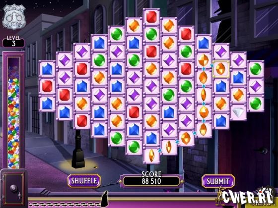 Украдены драгоценные камни Гемополиса! Комиссар полиции просит Вас взяться за это дело: найти украденные драгоценные камни, собрать улики и найти виновных. Сама игра представляет собой гонка на время, в которой Вам предстоит составить длинные цепочки из сверкающих камней одного типа, чтобы заполнить все выходы подвала и не дать преступникам скрыться.