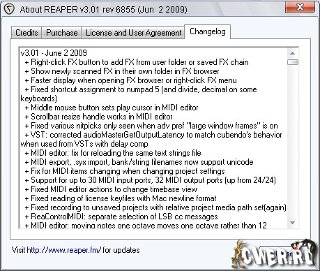 Reaper - компактный аудиоредактор для создания, редактирования и записи многоканальных аудиотреков с возможностью обработки каждого трека по отдельности. REAPER позволяет применять во время обработки аудио множество эффектов, поддерживает технологии ASIO, Kernel Streaming, WaveOut и DirectSound воспроизведение и запись. Поддерживает работу с файлами в форматах WAV, OGG, MP3, MIDI (чтение) и WAV, MIDI (запись), управление уровнем громкости, изменение границ трека, допускает многоуровневый откат/повтор выполненных операций и многое другое.