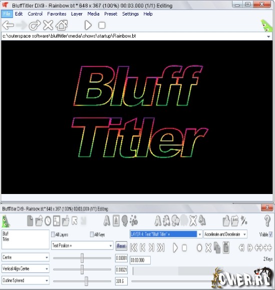 BluffTitler DX9 предназначена исключительно для создания титров, и