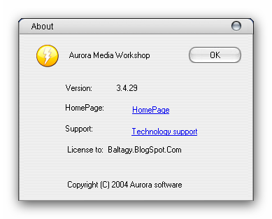 Aurora Media Workshop - набор инструментов для выполнения всех основных операций с видеофайлами - резки, склейки, конвертирования в другой формат, сохранения кадра в отдельный графический файл и т.п. Позволяет конвертировать медиафайлы (AVI, MPEG1, MPEG2, ASF, WMV, VOB, DAT , DivX, Xvid), производить риппинг аудиотреков, а также записывать с внешних источников. Кроме этого, с помощью Aurora Media Workshop можно записывать Audio CD, Data CD/DVD, Video CD и сохранять собранный образ отдельным ISO-файлом. Для поддержки WMA-формата требуется установленный Windows Media Encoder 9 или выше.