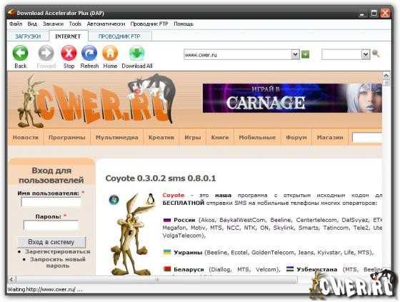 Download Accelerator Plus - менеджер закачек, позволяющей ускорить процесс скачивания файлов из интернета. Поддерживается одновременная загрузка с нескольких серверов, докачка после разрыва соединения, автовыключение компьютера после завершения сеанса работы. Утилита имеет встроенные средства поиска файлов на серверах. Менеджер хорошо интегрируется с браузерами, поддерживает работу через прокси и т.д. Имеется русский интерфейс.