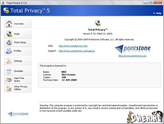 Total Privacy - специалист по уничтожению следов деятельности пользователя на компьютере. Приложение справляется с кэшем всех популярных браузеров и может подчищать историю интернет-пейджеров MSN Messenger, AOL, ICQ и Yahoo. Вдобавок программе по силам изменить историю посещенных страниц и недавно открывавшихся документов, а также многие менее существенные и не связанные с интернет-активностью "следы". Отметим еще возможность запуска программы по расписанию или по "условному сигналу" - к примеру, по закрытию браузера.