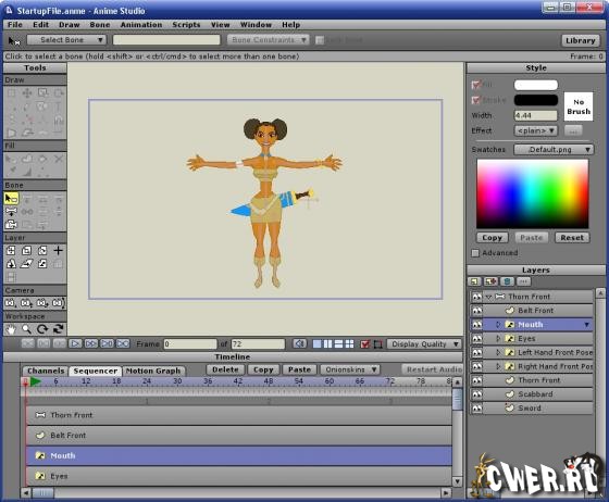 - Bone-Based Animation Technology - Using Anime Studio's bone rigging system, you can add a skeleton to any image by simple point and click, then bring it to life!