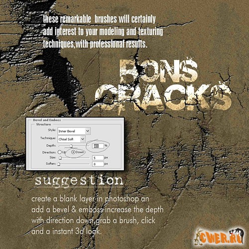 В коллекцию кистей Рона Девинея вошли две серии кистей cracks. Серия cracks II уже есть в моих темах на СWER.ru.