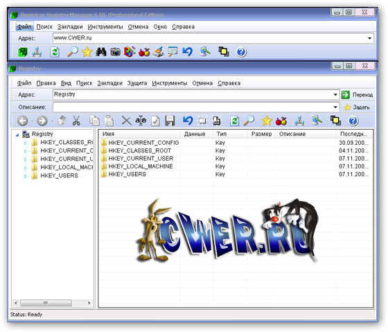 Registrar Registry Manager (в прошлом Resplendent Registrar) - мощнейшее средство для работы с системным реестром. Программа позволяет: производить поиск и замену, делать импорт-экспорт-бэкап, сравнивать ветви, делать закладки, отменять сделанные изменения, восстанавливать реестр, раскрашивать ключи, добавлять к ним описания и выполнять многие другие действия как на отдельной машине, так и в локальной сети. Он более безопасен чем Regedit, родной редактор реестра Windows. Выполняет программное резервирование системного реестра. Есть функция восстановления, а также многоуровневая отмена. Встроенный редактор файлов системного реестра позволяет Вам редактировать файлы системного реестра на диске. Например снимок реестра системы, таким образом Вы можете использовать его, чтобы восстановить и исправить прерванные инсталляции Windows, которые ведут к ошибкам системного реестра. Эта программа поможет в работе не только системным администраторам, но и простым пользователям.