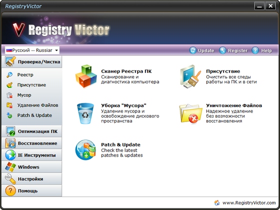 Registry Victor – программа для улучшения работы компьютера, которая находит ошибки, оптимизирует систему и ускоряет ее. Вы можете столкнуться с различными проблемами, которые постепенно появляются с использованием компьютера, например, замедление, зависание, «голубой экран смерти», постоянные сообщения об ошибках и т.д. Registry Victor использует только самые продвинутые технологии для сканирования вашей системы и дает вам наиболее полную диагностику всего за несколько секунд.