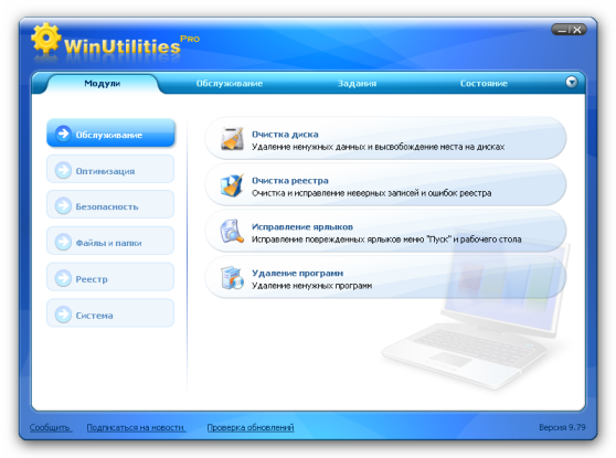 WinUtilities - набор для настройки вашей системы, содержащий более 20 инструментов для увеличения и настройки производительности вашего компьютера. Программа предлагает привлекательный и легкий в использовании интерфейс, который организует все задачи по категориям и предоставляет графическую статистику там, где это возможно.