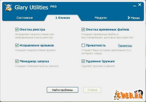 Функциональный набор системных твикеров и утилит, для тонкой настройки, повышения общего уровня производительности и защиты ПК. Данное приложение позволяет пользователю избавиться от ненужных файлов, от устаревших регистрационных записей и истории Интернет-активности (посредством установки различных плагинов, можно добиться полной совместимости данного приложения с более чем 45 различным программами). Интерфейс: многоязычный.