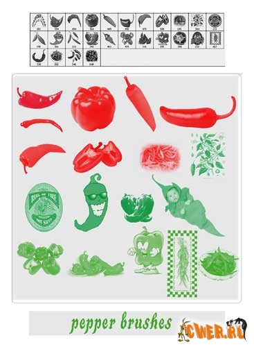 Эта кисточка хранит в себе 25 изображений различных перцев
