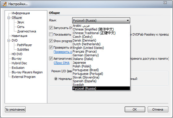 DVDFab – мощный, многофункциональный программный продукт для копирования DVD дисков с возможностями гибкой обработки видеопотока. Программа является одной из лучших на сегодняшний день, из инструментов для копирования, разбиения, пережатия и конвертирования DVD дисков с фильмами. Снимает все защиты и ограничения с диска и при желании пережмет диск большой емкости и вместит его в обыкновенную пустую DVD болванку с минимальными потерями качества (DVD9->DVD5) или разобьет фильм на два диска с полным переносом его меню, удалит всю рекламу, запишет только фильм и многое другое. Программа имеет интуитивно понятный, мультиязычный интерфейс включая русский.
