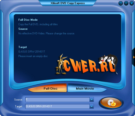 Простая в использовании и быстрая утилита для копирования видео с дисков DVD. Xilisoft DVD Copy Express предоставляет пользователю наилучший способ для быстрого копирования DVD-фильмов с высоким качеством. Программа может скопировать диск один к одному или с легкостью сжать DVD-9 (двухслойный диск) до размера DVD-5. Возможности Xilisoft DVD Copy Express также включают в себя удаление меню диска, выбор субтитров, аудио-дорожек, копирование отдельно основного фильма для создания собственного DVD.