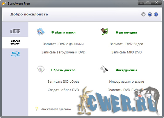 BurnAware Free - относительно небольшая, бесплатная и простая в использовании программа для записи информации и музыкальных композиций на CD, DVD, Blu-Ray и HD-DVD диски, которая пригодится как опытным пользователям, так и новичкам. BurnAware поддерживает работу со всеми типа оптических дисков (включая CD-R/RW, DVD-R/RW, DVD+R/RW, BD-R/RE, HD-DVD-R/RW и DVD-RAM) и аппаратными устройствами записи. Утилита поддерживает создание образов, способна писать мультисессионные диски, имеет опцию проверки записанного содержимого, работает под операционными системами Windows 98/ME/NT/2000/XP/Vista (32/64-bits).