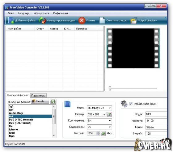 Free Video Converter - это бесплатный конвертор, предназначенный для преобразования всех ваших видео файлов. Он поддерживает преобразование ваших любимых видео из / в AVI, MP4, Ipod, PSP, 3GP (формат мобильных телефонов), Zune, iPhone, FLV, MKV, WMV, ASF, MOV, QuickTime, MPEG, RM, VCD, VOB, AVCHD (HD видео). Может извлекать только музыку в MP3, WMA, AAC...