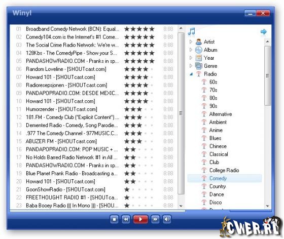 Winyl - небольшой, не требующий много системных ресурсов проигрыватель аудио. Разработчики обещают новый подход к организации вашей музыкальной коллекции. Помимо ведения медиабиблиотеки программа может предложить скины на выбор, простой интерфейс, отличный звук, рейтингование композиций, поддержку графики для обложек альбомов и многое, многое другое, вплоть до поддержки Windows Vista.