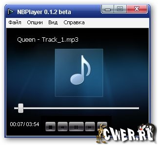 NBPlayer - этот простой плеер предназначен для проигрывания аудиофайлов самых распространенных форматов: MP3,WAV,WMA,CDA,MID. Имеет интерфейс в стиле Win7 Windows Media Player 12. В плеере нет ничего лишнего, а также он легкий и не загружает систему.