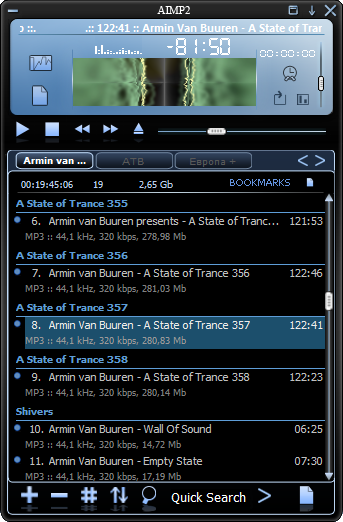 AIMP - это многофункциональный аудио центр. Благодаря встроенным утилитам, вы легко сможете перекодировать музыку из одного формата в другой, записать звук с микрофона или другого звукового устройства, отредактировать тэги музыкальных файлов, а так же группой переименовать или отсортировать их. AIMP2 базируется на известном аудио движке BASS - вы с легкостью можете подключить плагины от этой библиотеки к AIMP.AIMP - это отличный аудио плеер с поддержкой: скинов, многих музыкальных форматов и плюс, имеющий встроенные утилиты для работы со звуком. AIMP победил в «Софт года 2007» в номинациях «Интерфейс» и «Функциональность».