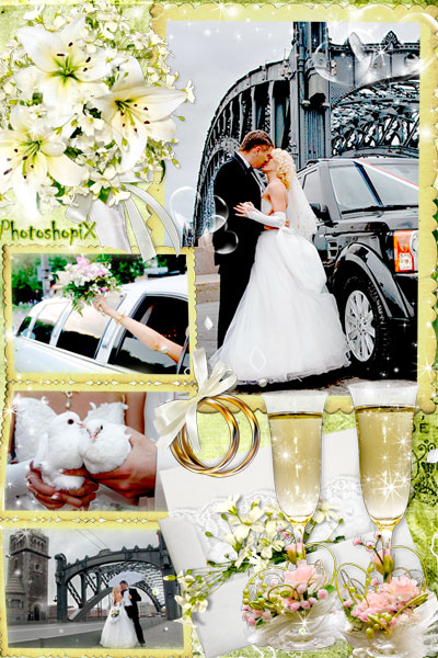 Свадебный мини скрап набор включает 12 элементов PNG, 3 рамочки PNG, 10 фонов JPG 3600х3600.