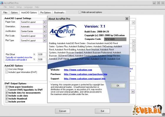 Фирма CADzation, известная своими разработками конверторов DWG-файлов в форматы PDF и DWF, объявила о выпуске программы AcroPlot Pro для AEC-приложений (архитектура, инжиниринг и строительство) и для администраций различного уровня, позволяющее создавать файлы PDF, полученные из формата DWG так, что они будут выводиться на печать именно так, как они выглядят на дисплее (принцип WYSIWYP – «как видите, так и будет напечатано!»).
