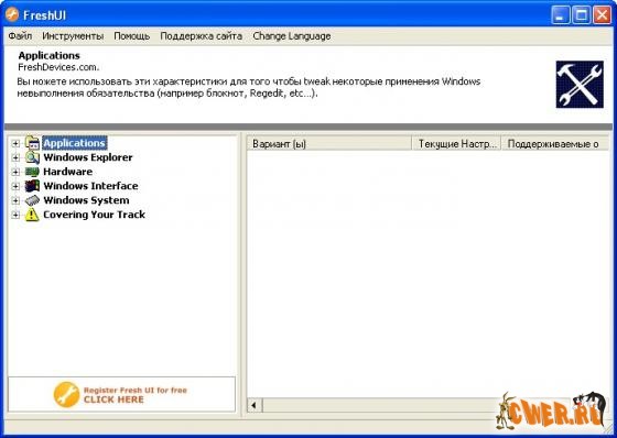 Утилита Fresh UI, при помощи которой вы получите доступ к большому числу параметров операционных систем Windows, разбитым на несколько категорий — интерфейс, система, аппаратная часть, приложения (Windows) и пользователи (среда и правила).