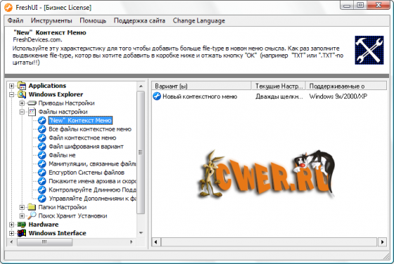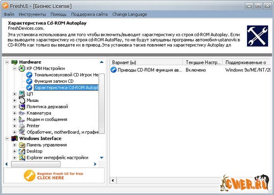 Fresh UI - полезная утилита для настройки ОС семейства Windows. В Fresh UI доступны как программные, так и "железные" настройки системы, выбор системной политики и т.д. В программе несколько разделов, в каждом из которых имеются пункты, которые необходимо включать или выключать для соответствующего воздействия на систему. Каждая настройка имеет краткий комментарий по поводу ее работы. Пункты, не соответствующие вашей ОС, будут недоступны (т.е. то, что подходит для 9х, неприменимо в XP и наоборот). В этой версии расширены скрытые возможности по настройке параметров, касающихся сети (Network settings).