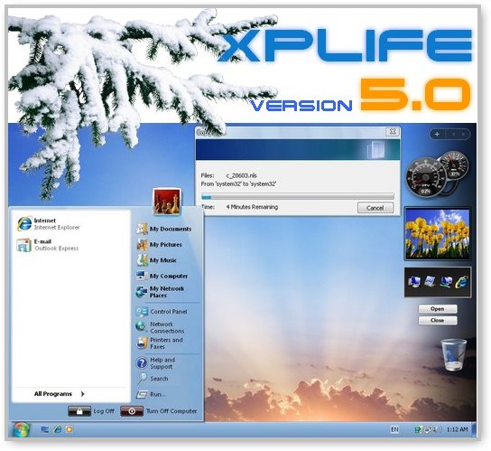 XPLife - программа предназначена для изменения интерфейса Windows XP x86 (32-bit), делая его похожим на Vista и Seven. Отличительной чертой XPLife является стабильная работа и поддержка двух собственных точек восстановления системы. При трансформации системы, изменяется огромное количество иконок, картинок, добавляются новые функции, звуки, курсоры, обновляются до 500 системных файлов, всего около 4000 ресурсов. Интерфейс Windows выдержан в нескольких тонах, одиннадцать стилей оформления и одиннадцать тем, выбор удовлетворит даже самых требовательных пользователей. Программа изменяет только визуальную часть файлов Windows не затрагивая программный код, поэтому безопасна в использовании и не потребляет дополнительные ресурсы, используются только системные.