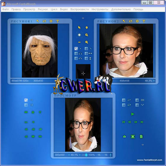 FantaMorph - программа для создания анимированных изображений с эффектом морфинга и различных деформаций изображений. С помощью этой программы вы сможете создавать удивительные анимированные изображения, с плавным переходом от одной фотографии к другой с применением различных эффектов и деформаций. Программа имеет большое количество предустановок эффекта, поддерживает импорт видео, а также имеет широкие возможности по настройке и улучшению качества изображений. Вы сможете обрезать, поворачивать, регулировать цвет, добавлять различные надписи и потрясающие эффекты с помощью встроенных инструментов для редактирования без необходимости в обращении за помощью к сторонним приложениям. Программой поддерживается большое количество графических форматов, включая BMP, JPEG, TIFF, PNG, GIF, TGA, PCX и другие. Результат вы сможете экспортировать в AVI формат, анимированный GIF, флэш, формат экранной заставки, автономный EXE файл и в другие форматы.