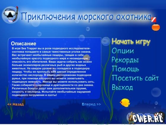 Попробуйте себя в роли кладоискателя и охотника на морских существ в игре. Подводный мир, загадочный, манящий и опасный. Он влечет Вас своими необычными жителями и старыми пиратскими кладами, заросшими водорослями и моллюсками. В нем еще много неоткрытых тайн и неизведанных уголков. Вам интересно проникнуть за грани непознанного? Тогда отправляйтесь в путешествие!