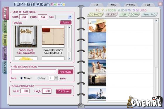 Лучшая в своем роде программа, позволяющая создать 3D цифровой флеш - фотоальбом из ваших любимых фотографий. Позволяет создавать реальный эффект переворачивания цифрового фото альбома. Настройка фонового цвета. Создает отдельные флеш файлы.