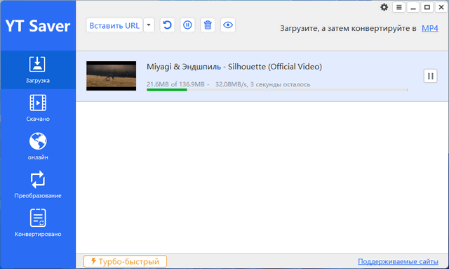YT Saver - это программное обеспечение, которое поддерживает загрузку видео, аудио, плэйлистов с 10000 сайтов, преобразование видео в MP4, MOV, AAC, WAV и многое другое. YT Saver - это мощный загрузчик, позволяющий сохранять видео и аудио.