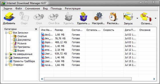 Internet Download Manager (IDM) – программа предназначена для организации загрузок файлов из Интернет. Различные методы ускорения загрузки, динамическая сегментация файлов и одновременное скачивание нескольких частей, использование свободных открытых подключений без реконнекта и многое другое. Встроенная звонилка для соединения по расписанию. поддержка файрволлов, прокси и зеркал, FTP and HTTP protocols, редиректов, куки, очередей закачки, авторизации пользователя.