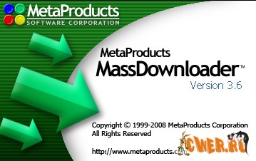 MetaProducts Mass Downloader - программа для удобного скачивания файлов из Интернета по протоколам HTTP и FTP, созданная на базе Offline Browser, разница только в том, что менеджер закачки загружает указанные пользователем файлы, а оффлайн-браузер - все файлы сайта. Программа разбивает закачиваемый файл на части и качает все части одного файла одновременно, тем самым увеличивая скорость. Может автоматически соединиться с провайдером, закачать файл и отключиться. Также позволяет докачивать файл после разрыва соединения (при условии, что сервер поддерживает докачку). Поддерживаемые протоколы HTTPS, FTP, RTSP, MMS, MMST и PNM. Имеется интеграция с веб браузерами Internet Explorer, Opera, Netscape Navigator, Mozilla, Firefox, Seamonkey и Flock. Программа имеет многоязычный интерфейс, включая русский язык и поддерживает работу с Windows Vista.