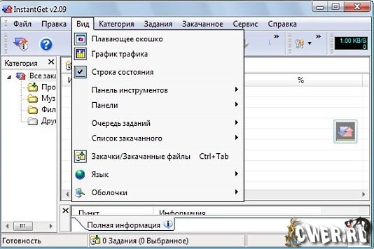 InstantGet — это небольшой, но мощный и удобный менеджер загрузок, позволяющий скачивать файлы по протоколам HTTP и FTP. Программа обладает приятным и удобным интерфейсом, поддерживает докачку, может скачать файлы несколькими потоками, позволяет ускорить загрузку, обладает большим количеством настроек, имеется встроенный поиск, интегрируется в оболочку, отслеживает появление ссылок в буфере обмена и т.д.