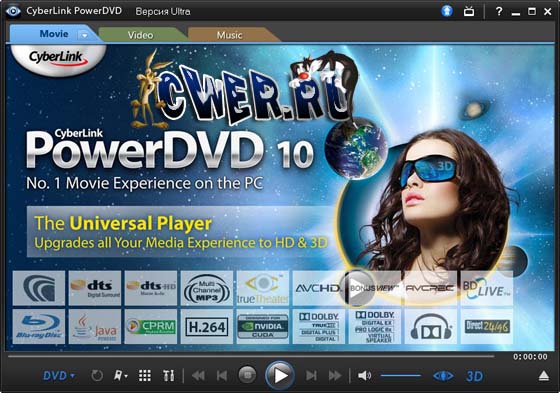 CyberLink PowerDVD - один из самых лучших современных программных проигрывателей, позволяющий осуществлять интерактивный просмотр дисков DVD-Video и Video CD на вашем компьютере. К основным достоинствам данного проигрывателя можно отнести высокое качество изображения, удобный интерфейс со скинами и хорошую настраиваемость. Кроме просмотра фильмов с компакт-дисков (DVD и Video CD), PowerDVD позволяет проигрывать файлы форматов, поддерживаемых Windows Media Player, а также MPEG1 и MPEG2. В программе также имеются функции захвата кадров в файл формата BMP, повтора участка записи, регулировки параметров отображения, запоминания момента остановки, поддержки колеса прокрутки мыши и многие другие возможности. С помощью функции Movie Collection вы можете создавать собственный каталог вашей коллекции фильмов, храня рецензии, личные примечания, информацию об обложке фильма, а также обмениваться этими данными с другими пользователями с помощью сервиса MoovieLive.