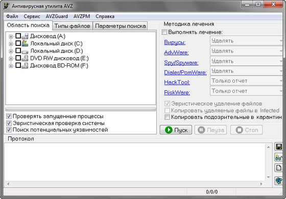 AVZ - антивирусная утилита AVZ предназначена для обнаружения и удаления: SpyWare и AdWare модулей - это основное назначение утилиты; Dialer (Trojan.Dialer); Троянских программ; BackDoor модулей; Сетевых и почтовых червей; TrojanSpy, TrojanDownloader, TrojanDropper