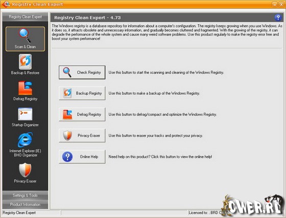 Registry Clean Expert - программа для сканирования реестра на предмет неправильной или устаревшей информации. Благодаря изменению таких данных в реестре система начинает работать быстрее и без ошибок. Программа имеет опцию резервного копирования и восстановления реестра на случай, если система даст сбой. Кроме этого, используя Registry Clean Expert, вы можете управлять приложениями, которые запускаются вместе с Windows и Internet Explorer. Также утилита включает в себя модуль поиска "шпионских" модулей и имеет интуитивно-понятный интерфейс.