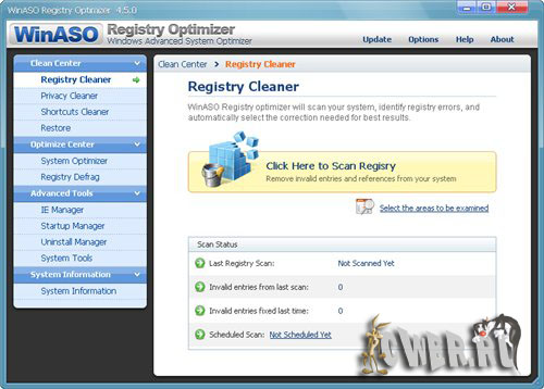 WinASO Registry Optimizer - программа которая поможет вам в чистке и восстановлении системного реестра Windows. В процессе работы программа сканирует реестр и удаляет некорректные или устаревшие записи, тем самым, ускоряя работу Windows и избавляя её от разного рода ошибок. Среди дополнительных возможностей можно отметить: проверку реестра по расписанию, дефрагментацию реестра, создание списка ошибок, которые программа должна игнорировать, менеджер автозагрузки, деинсталяция приложений, а также очистка диска от временных файлов и файлов интернета. Имеется опция отмены произведенных изменений.