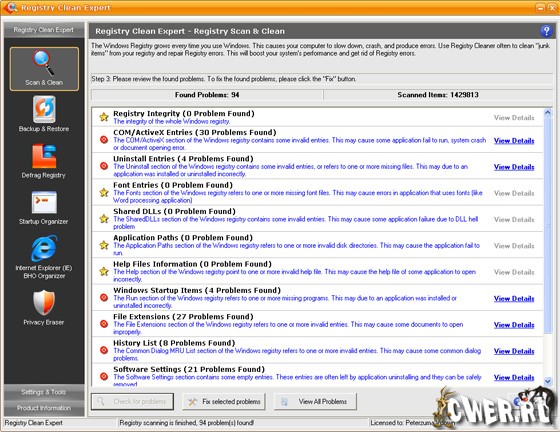 Registry Clean Expert - программа для сканирования реестра на предмет неправильной или устаревшей информации. Благодаря изменению таких данных в реестре система начинает работать быстрее и без ошибок. Программа имеет опцию резервного копирования и восстановления реестра на случай, если система даст сбой. Кроме этого, используя Registry Clean Expert, вы можете управлять приложениями, которые запускаются вместе с Windows и Internet Explorer. Также утилита включает в себя модуль поиска "шпионских" модулей и имеет интуитивно-понятный интерфейс.