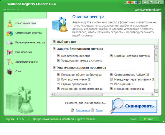WinMend Registry Cleaner - мощная утилита для очистки реестра и оптимизации приложений. Он состоит из четырёх основные функции модулей: очистка реестра, оптимизация реестра, резервное копировани и планировщик резервного копирования. Программа может эффективно и всесторонне проанализировать систему, точно обнаружить ошибки и устаревшие данные, безопасно устранять или удалять их, таким образом уменьшить нагрузку на ваш компьютер и повысить скорость и производительность системы. Она также анализирует различные параметры системы, такие как, процессор, память, диски и обеспечивает всеобъемлющую статистику.